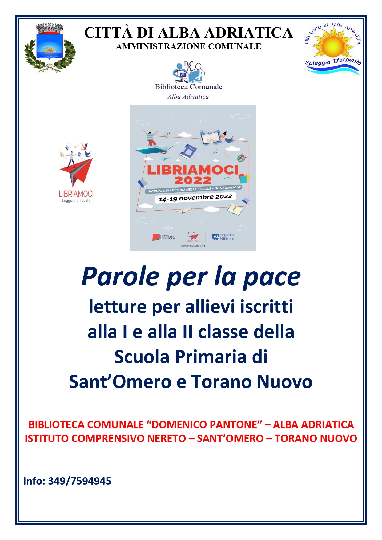 Nella settimana dal 15 al 20 novembre, in occasione delle “Giornate di lettura nelle scuole”, si organizzeranno iniziative dedicate alla lettura ad alta voce a cui saranno invitati a partecipare tutti gli alunni dell’Istituto.