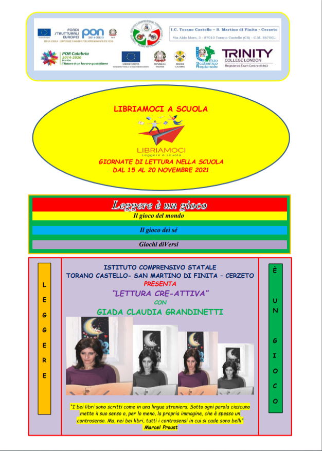 Lettura di brani attinenti ai tre filoni dell'inziativa con animazione teatrale nelle classi e performance della prof.ssa Grandinetti Giada Claudia con le studentesse e gli